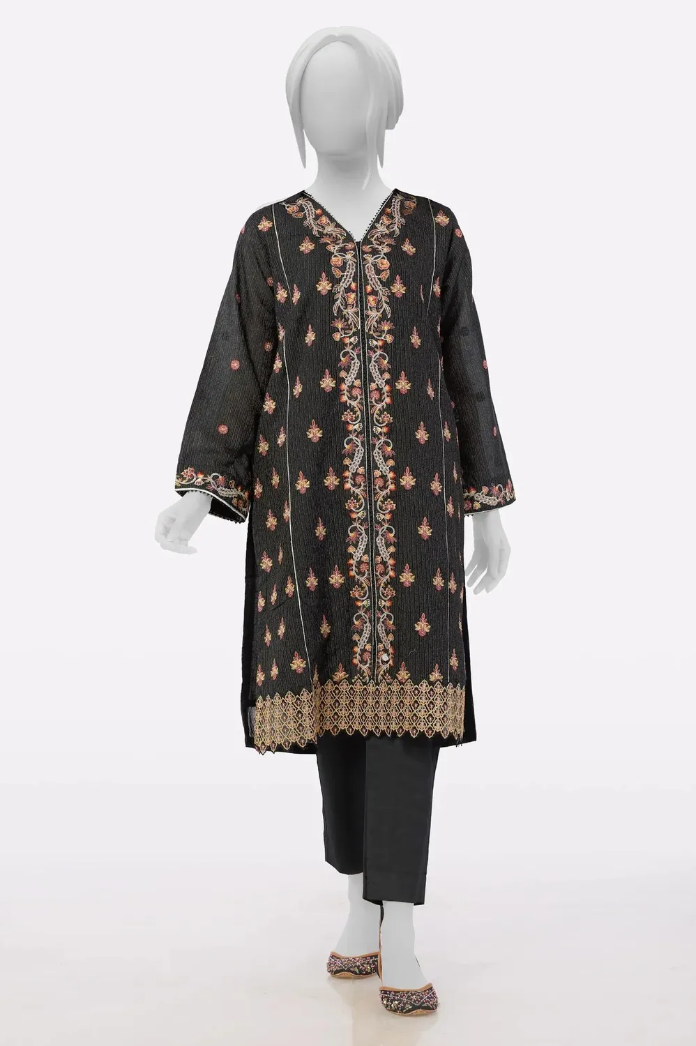 Intricate threadwork detailing; High-quality lawn or cotton silk; Three-quarter sleeves; Traditional semi-formal wear.